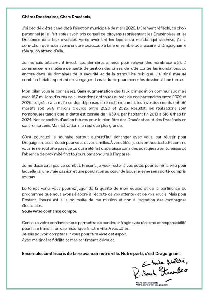Sécurité, voirie, éducation, social, écologie, aînés, ados, enfants,… Nous avons pris, ensemble, durant ces 12ans, le chemin pour rendre à Draguignan sa superbe.